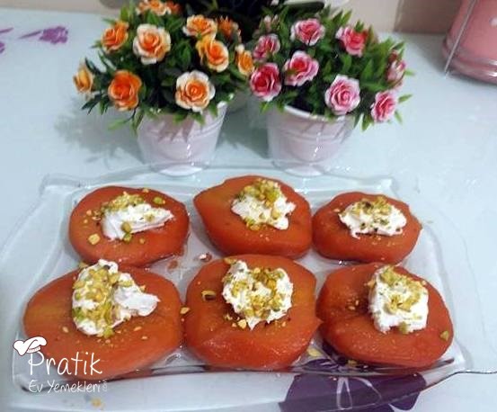 Tatlıları servis kabınıza alın ve 3-4 saat kadar soğuması için bekletin. Servis ederken kalan şerbetinden ayvaların üzerine gezdirmeyi unutmayın. Kaymak ve Antep fıstığı ile süsledim siz tercihlerinize göre süsleyebilirsiniz.