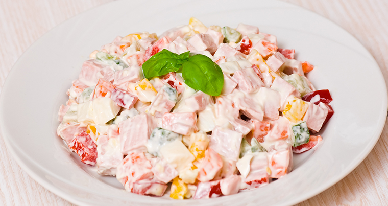 Daha sonra salatalık turşusunu da oldukça küçük küpler halinde doğrayın ve kabın içerisine alın. Yoğurt ve mayonezi de birleştirerek iyice karıştırın. Tüm hazırladığınız doğranmış malzemeleri bir kabın içerisine alarak hepsini karıştırın ve üzerine mısır da ekleyerek servise hazır hale getirebilirsiniz. Dilerseniz damak zevkinize uygun baharatları da tercih edebilirsiniz. Şimdiden afiyet olsun.