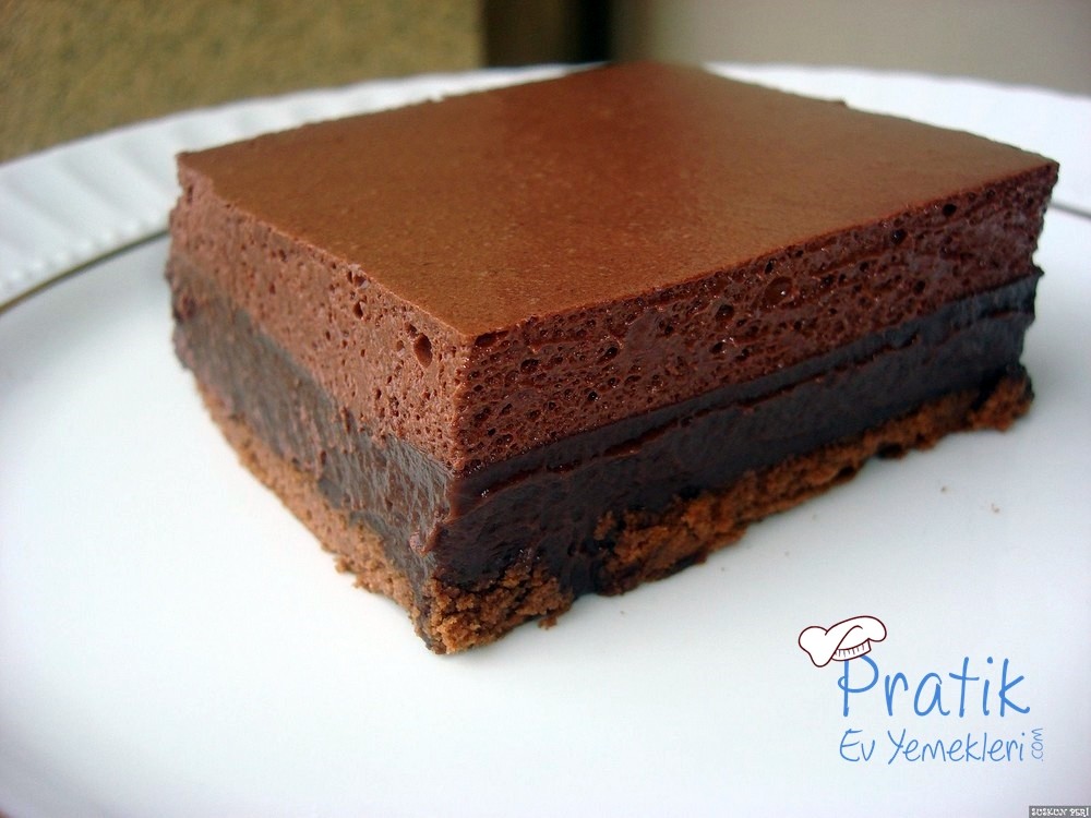 Kare borcamın tabanı kakaolu bisküvi ile kaplanır. İki paket puding 3 su bardağı süt kullanılarak pişirilir. Bu puding bisküvilerin üzerine yayılır. Mousse 2,5 çay bardağı soğuk süt ile pişirmeden, sadece çırpılarak hazırlanır. Borcamın en üstüne yayılır. Buzdolabında en az 2 saat dinlendirilir. Tatlı soğuk olarak dilimlenerek servis edilir. Afiyet olsun