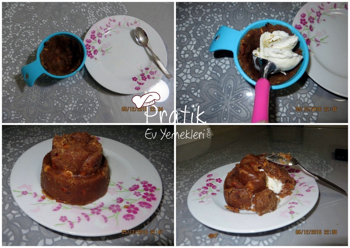 Bir kaba oda sıcaklığındaki su ve şekeri alalım. Karıştırılarak ısıtmadan şekeri suda eritelim. Bu karışım kenarda beklesin. Yağ, un ve bademler bir tencerede orta ateşte sürekli karıştırarak kahverengi oluncaya kadar kavrulur. Kavrulan malzeme ocaktan indirilir ve üstüne şekerli su karışımı yavaş yavaş ilave edilir ama çok hızlı bir şekilde sürekli karıştırılır. Topaklanma olmaması için çırpıcı ile karıştırabilirsiniz. Hem kolay, hem lezzetli servis yaparken arasına dondurma koyabilirsiniz. Afiyet olsun