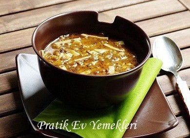 İşleme yeşil mercimeklerimizin üzerine sıcak su dökerek başlayalım. Bir süre sıcak suda bekleterek kara suyunun çıkmasını sağlayalım yada az haşlayalım. Bu arada tenceremize soğanları yemeklik doğrayıp yağda kavuralım.Üzerine kıymayı ve salçayı da ekleyelim. Diğer tarafta mercimeklerin suyunu süzüp onu da karışıma katalım. Üzerine sıcak suyu da ilave edip pişirmeye bırakalım. Mercimekler piştikten sonra erişteyi de katıp pişirelim.Sıcak sıcak servis yapalım.Afiyet olsun.
