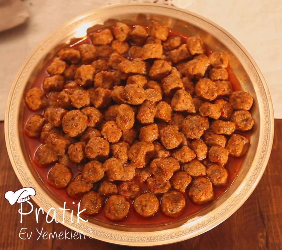Genişçe bir tasa kıyma konur. Kıymanın üzerine soğan renderenir. Bulgur, maydanoz, yumurta ve baharatlar eklenir ve köfte kıvamına gelinceye kadar yoğurulur. Çok katı olursa elinizle az su ilave edilir. Küçük misketler halinde köfte hazırlanır. İki parmak arasına alınarak hafif bastırılır. Tepsiye un serpilir ve köfteler bu unun üzerine atılır. Tüm köfteler bitince tepsi hafifçe sallanır tüm köftelerin bulanması sağlanır. Tencerede yağ ile salçayı kavurulur 3 su bardağı su konup kaynatılır. Kaynayan suyun içine köfteleri atıp pişirilir. Yapışmaması için köftelerin hepsini birden dökmeyin. 5′er 5′er atın. 10-15 dakika piştikten sonra yemeğe hazırdır. AFİYET OLSUN
