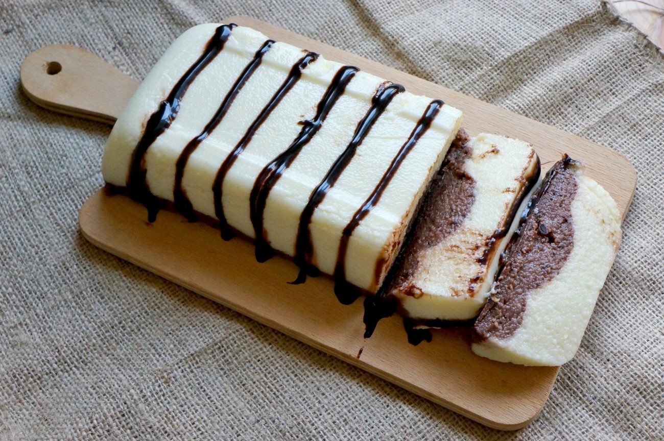 -Baton kek kalıbının içerisini streç film ile kaplayın. Daha sonra pişirdiğiniz muhallebinin yarısını kalıbın içerisine dökün.
