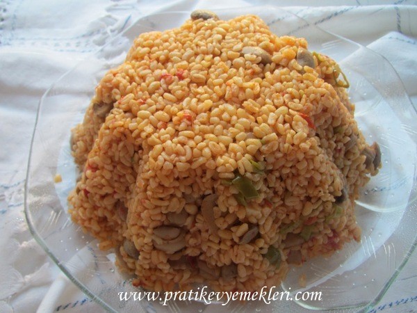 Domateslerin kabuklarını soyup küp küp doğrayıp tencereye ekleyin. 1 tatlı kaşığı salça ekleyin. Domatesler hafifçe suyunu çekince bulgurları ekleyip 1 – 2 dakika daha kavurup 1 tatlı kaşığı kadar tuzu ve 3 su bardağı su ekleyip kapağını kapatıp altını kısın. Pilav suyunu çekince altını kapatıp dinlenmeye bırakın. Sıcak olarak servis yapın..