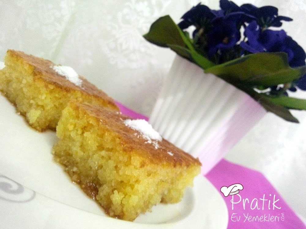 Öncelikle şerbeti hazırlayıp ılınmasını sağlıyoruz. Yumurtalarla şekeri çırpın. Yoğurdunu, portakal rendesi ve suyunu ve yağınıda ilave edip karıştırın. İrmiğini, ununu, kabartma tozunu da koyup tekrar çırpın. Yağlanmış tepsiye döküp önceden ısıtılmış 170 derece fırında üzeri kızarana kadar pişirin. Biraz ılındıktan sonra şerbeti döküp çekmesini bekleyin. Soğuduktan sonra servise hazır. Afiyet olsun.