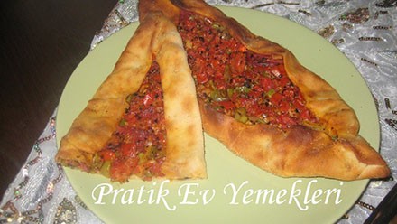Un bir kaba konduktan sonra ortası havuz açılır maya sıvıyağ tuz şeker konup karıştırılır. Hamur yoğrulur için hazırlanışı domatesler biberle küp küp doğranır sarımsak sucuk baharatlar ve yağ bir kapta karıştırılır fırın tepsisine galete unu serpilir(fırın pidesi havası vermek için) hamur istenilen boyda parçalara ayrılır diktörtgen açılır ortasına harç koyulur ucları üçgen birleştirilir. Yandaki hamur uste katlanır 230 derecelik fırında kızarana kadar pişirilir fırından çıkar çıkmaz üstü tereyağla yağlanır. Afiyet olsun harika oluyor