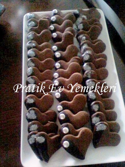 Kalpli Kurabiye Tarifi 1 paket margarin oda sıcaklığında 1 su bardağı pudra şekeri 1 paket kakao (30gr) 1 adet yumurta aldığı kadar un 1 paket bitter çikolata (kare olanlardan) Arjantin şekeri Pasta simi Önce pudra şekeri ve margarin yoğurulur daha sonra yumurta ve dıger malzemeler yoğurulur hamur 1 saat bekletilip merdaneyle açılır ve kalp şeklinde […]