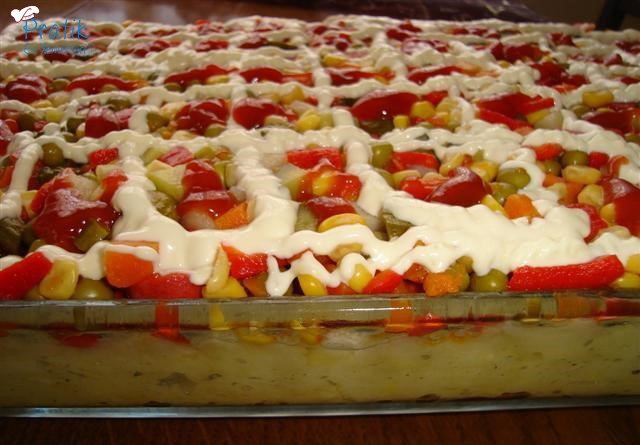 Fırında Kremalı Kumpir 5-6 orta boy haşlanmış patates 1 kutu krema (marketlerde küçük süt paketlerinde satılıyor) 1 yemek kaşığı tereyağ (arzuya göre) 8-10 tane sosis 1 kutu konserve mısır 1 su bardağı haşlanmış bezelye 1 çay bardağı dilimlenmiş yeşil zeytin 1 çay bardağı dilimlenmiş siyah zeytin kornişon turşu tuz, karabiber bol miktarda rendelenmiş kaşar peynir […]