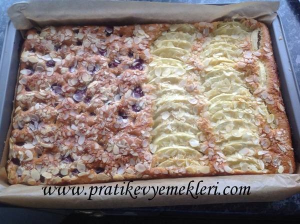 Almanların Tepsi Keki 3 tane yumurta 1 büyük fincan toz seker 1 büyük fincan süt 1 büyük fincan sıvıyağ 1 paket vanilya sekeri 1 paket kabartma tozu 1 çay kaşığının ucu kadar tarcin 2 büyük fincan un Üzeri icin 2 tane elma 1 avuç vişne file badem Önce yumurta ve şekeri 5 dk çırpın. Tüm […]