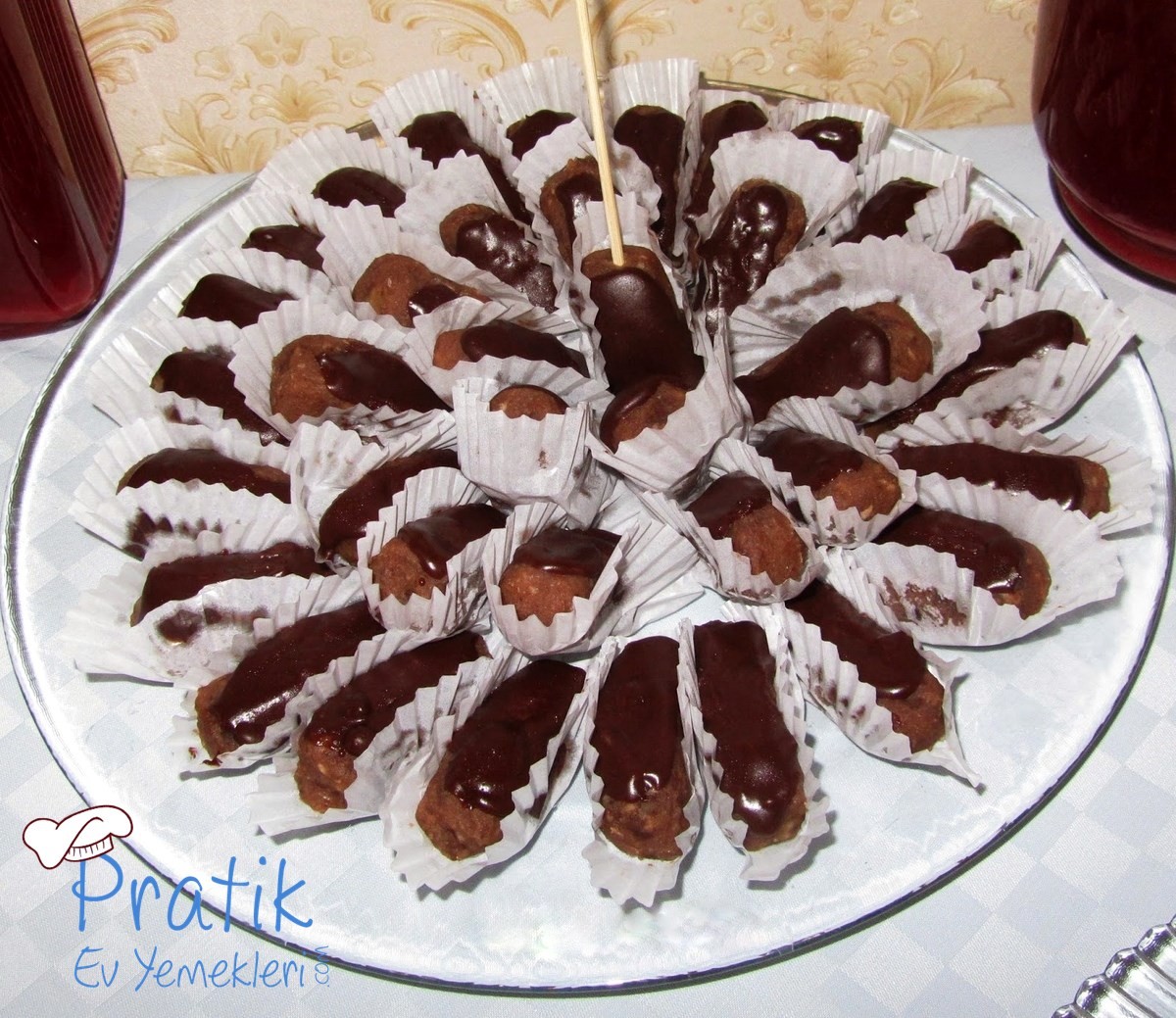 İsterseniz tamamen top şeklinde de yapabilirsiniz yada benim yaptığım gibi eklere benzetebilirsiniz. Ya da dilerseniz tamamen çikolataya bulayabilirsiniz. O daha bir güzel olur. Tercih size kalmış tabii.